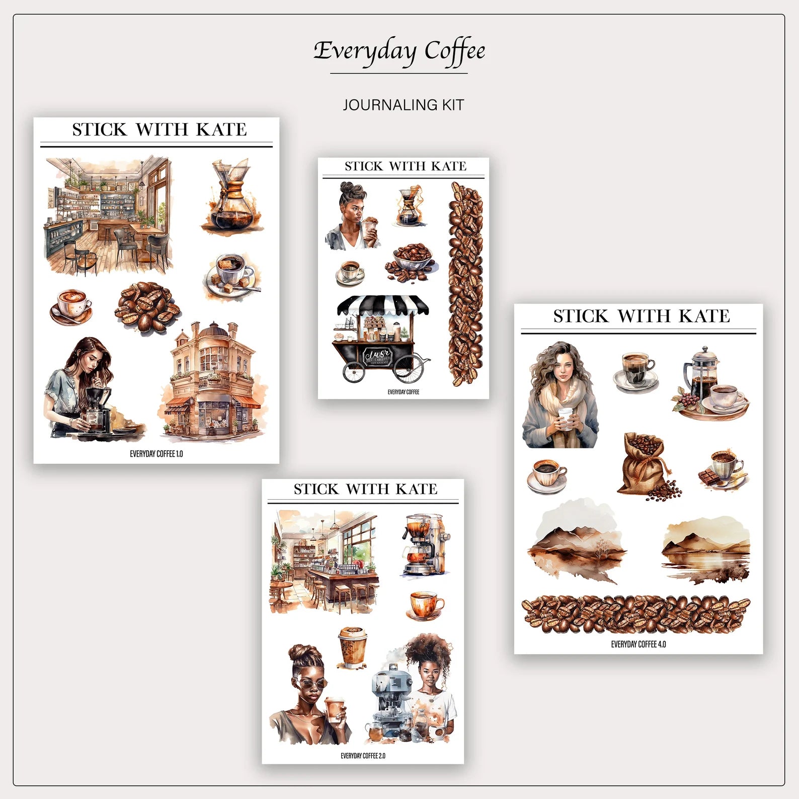 Everyday Coffee Journaling Sticker Kit | Set of 4 Sticker Sheets